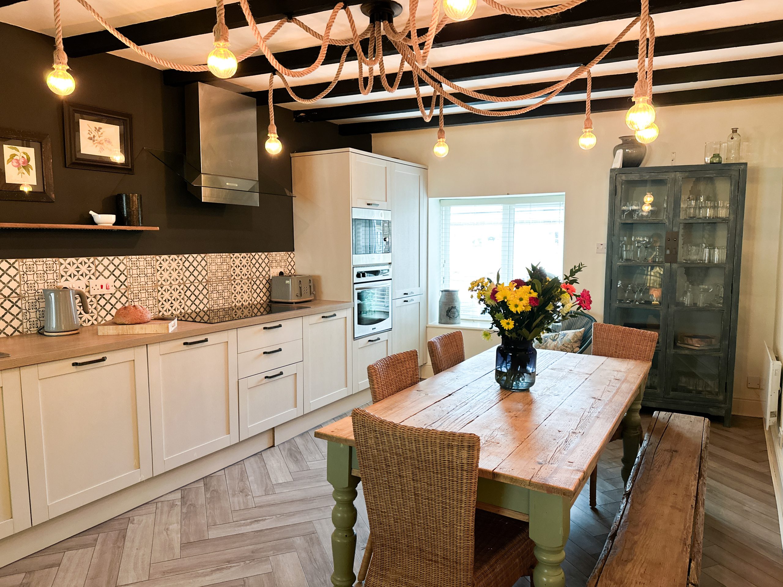 – Fully fitted oak shaker style kitchen with dining table to seat eight guests
