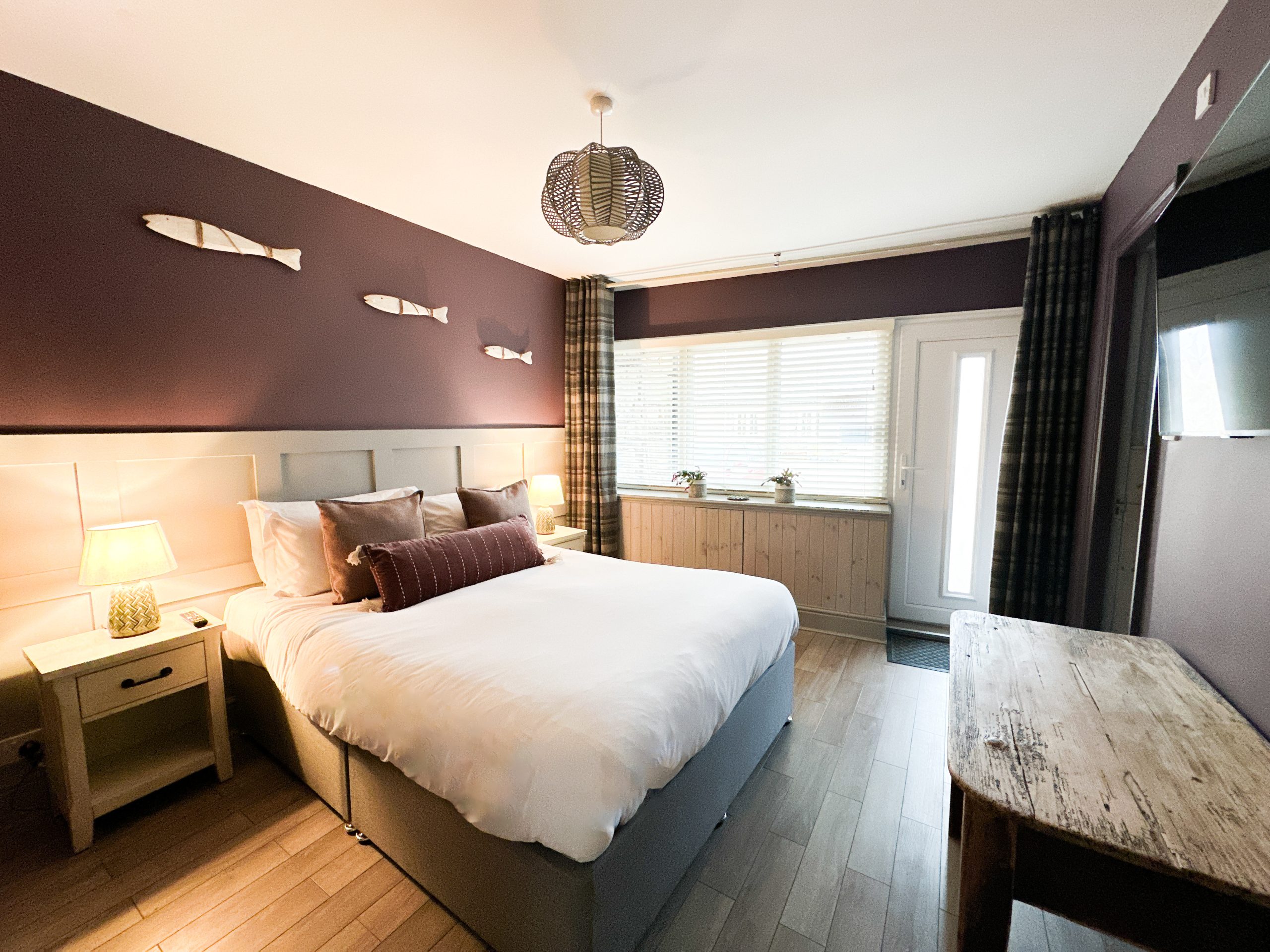 – Ground floor bedroom with king size bed, flat screen TV, En-suite and access to the rear patio