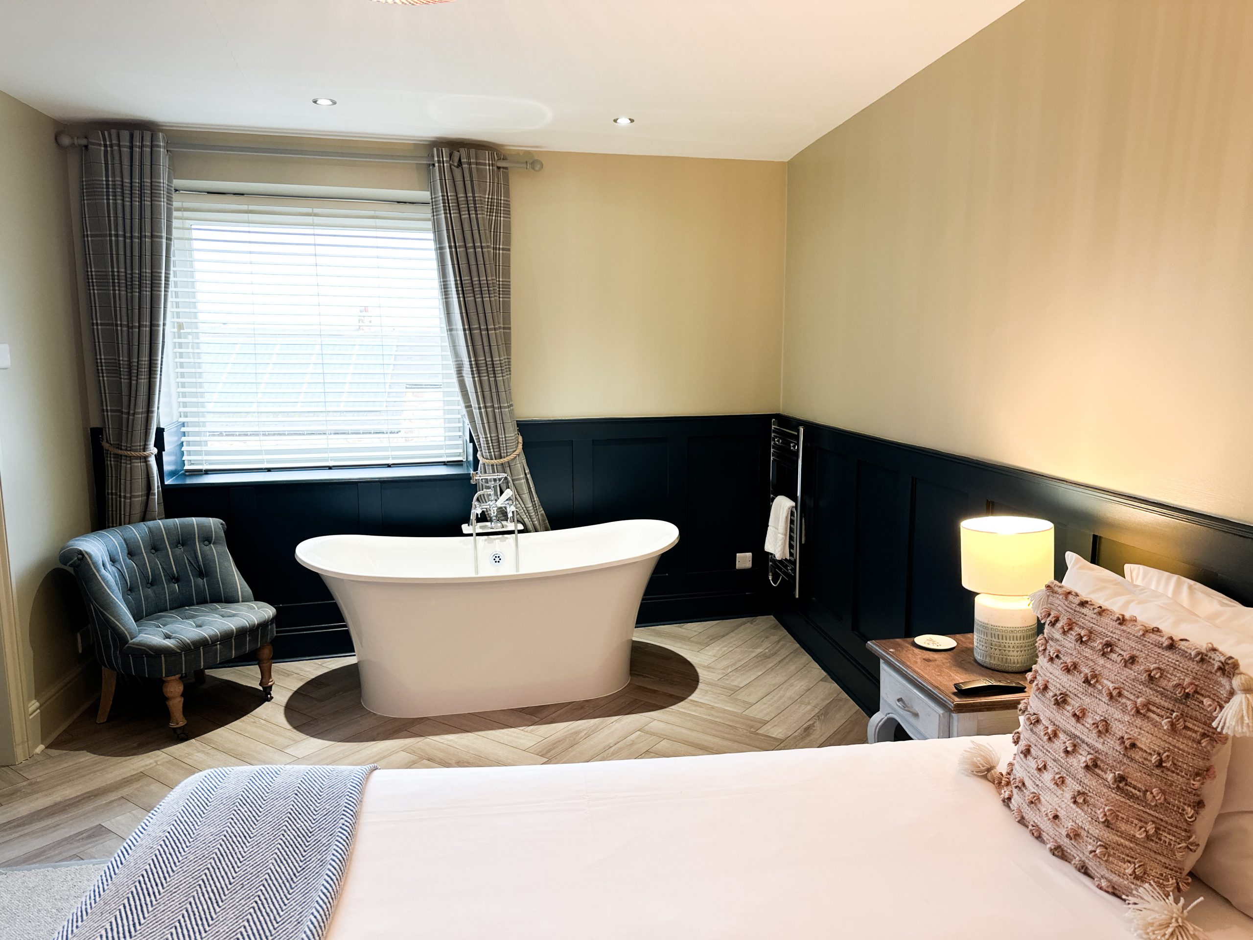 – Master bedroom with king size bed, TV, En-suite and free standing bath